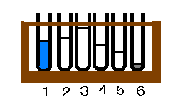 上の図の,試験管1から6には,水(精製水),グリセリン(C3H8O3),水ガラス,水銀,メタノール(CH3OH),4%硫酸銅水溶液のどれかが入っています。