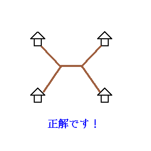 問題における四つの家を表わしいて,その四点を含むシャボン膜を張るとそれが,